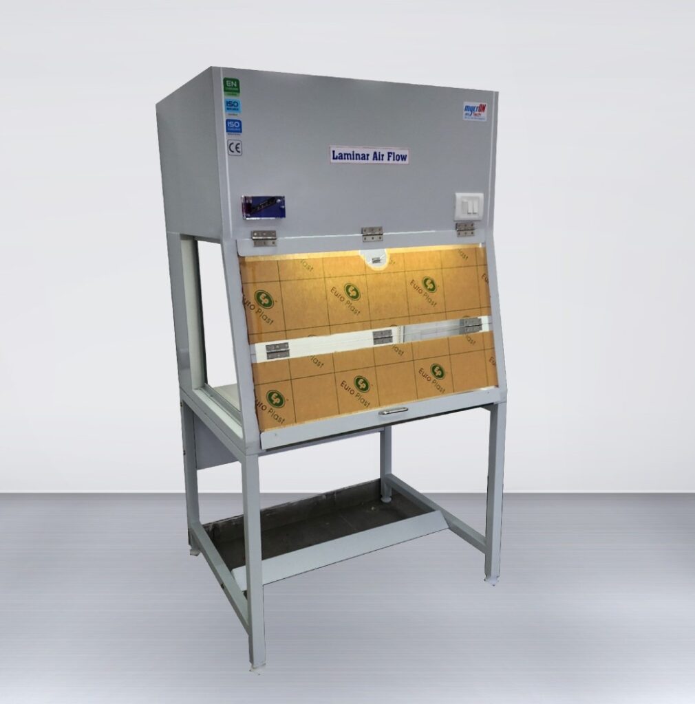 Mycron Air Tech presents a Laminar Air flow cabinet fabricated with GI powder coated, stainless steel 304 grade. It is a carefully enclosed bench designed to prevent contamination of semiconductor wafers, biological samples, or any particle sensitive materials. Air is drawn through a HEPA filter and blown in a very smooth, laminar flow towards the user. The cabinet is usually made of GI Powder Coated and stainless steel (grade 304/316).