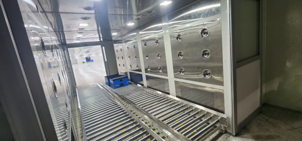 Mycron Air Tech presents its Air showers are made of GI powder coated and stainless steel 304 grades with international quality standard components. Air showers are specialized enclosed antechambers which are incorporated as entry ways of clean rooms and other controlled environments to reduce particle contamination. Air showers utilize high-pressure, HEPA filtered air to remove dust, fibrous lint and other contaminants from personnel or object surfaces.
